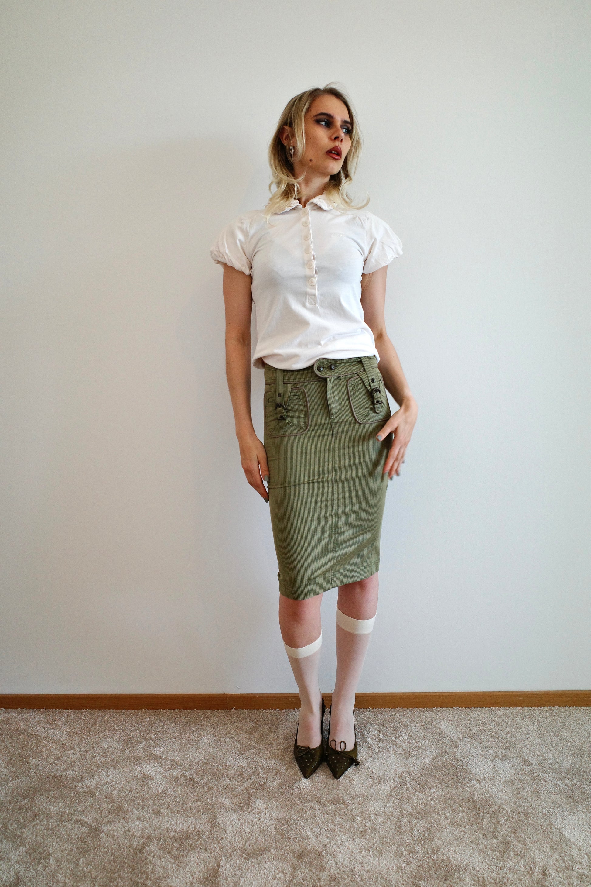 Roberto Cavalli — striped pencil skirt with buckled pocket detail. Very 90's office chic.