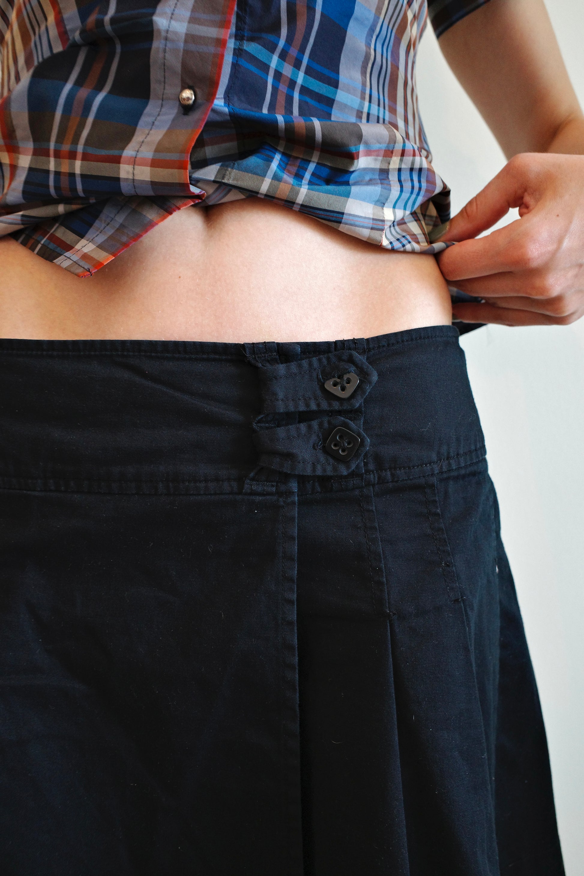 HALLHUBER - vintage pleated mini skirt with buttons on the front-side. A very chic staple piece for any wardrobe.