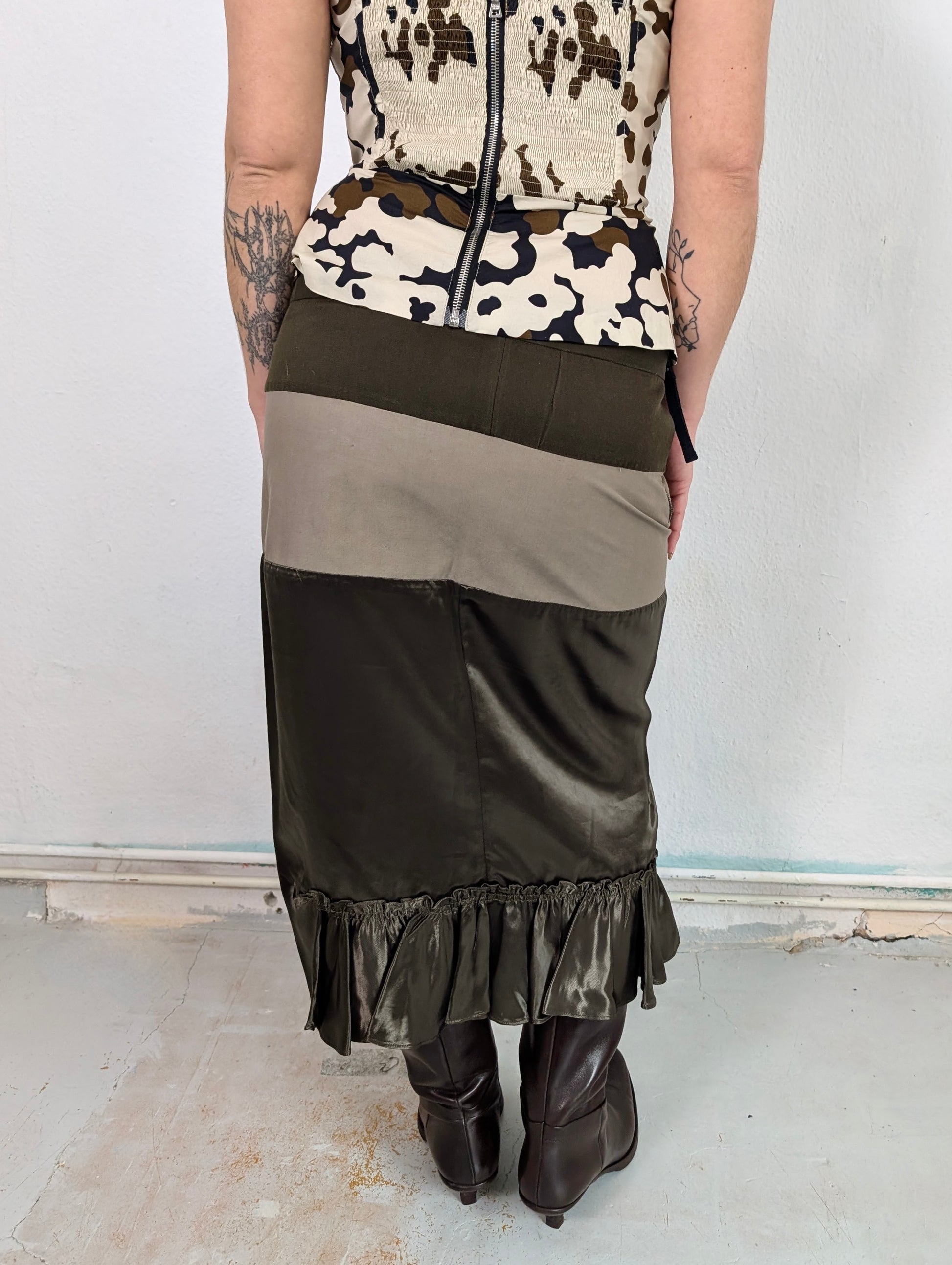 MARNI — This multicolor skirt from the Pre-Fall 2011 Collection features four shades of wood green in a rich mix of viscose and a liquid-like, shiny texture.