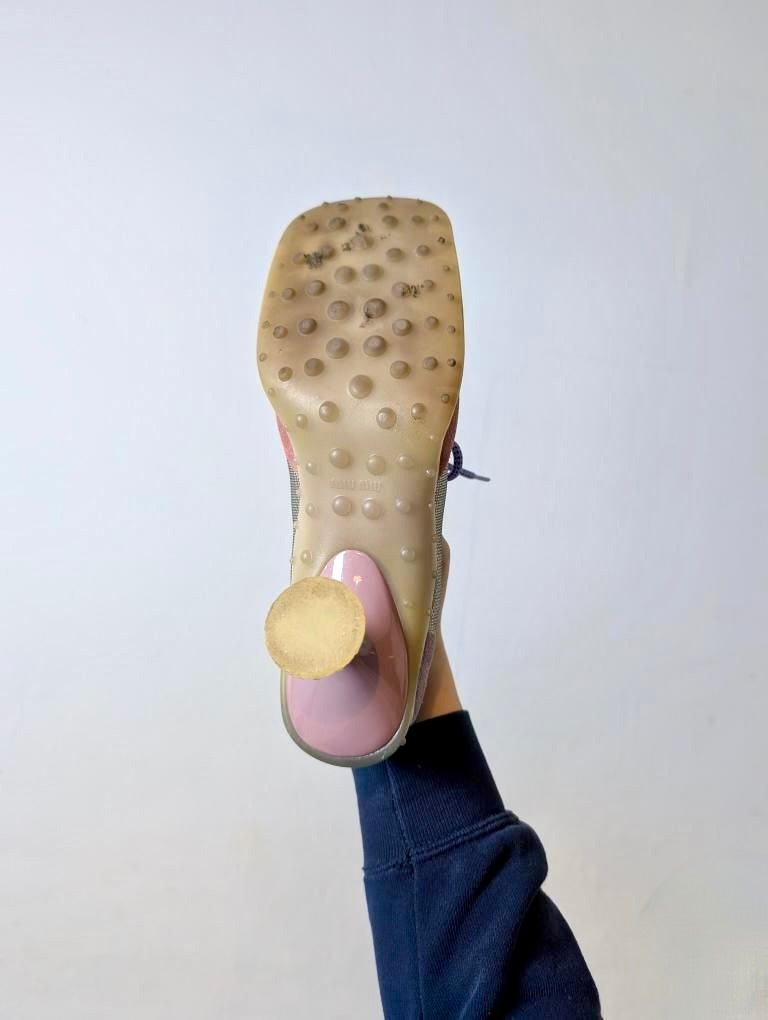 MIU MIU — The most iconic bubble sole sneaker heels in baby pink and metallic lilac. These rare runway pieces debuted in the Miu Miu Fall/Winter 1999 show, blending futuristic design with sporty-chic aesthetics. A true collector’s gem! IFYKYK.