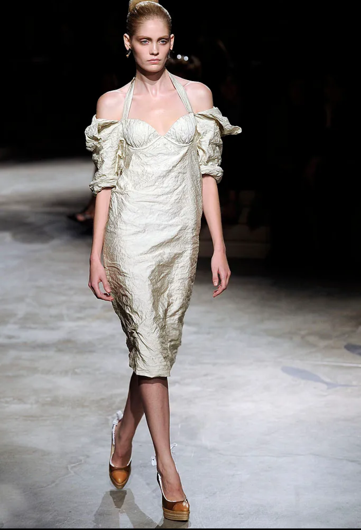Prada - These iconic leather heels from the Spring/Summer 2009 Show are one of the most discussed shoes in modern fashion history. The towering heels were paired with satin socks, which made it difficult to walk. Many models stumbled, tripped, or fell, causing panic and fear. This resulted in widespread media coverage. When the shoes went into retail, a shorter version was sold and without the socks.
