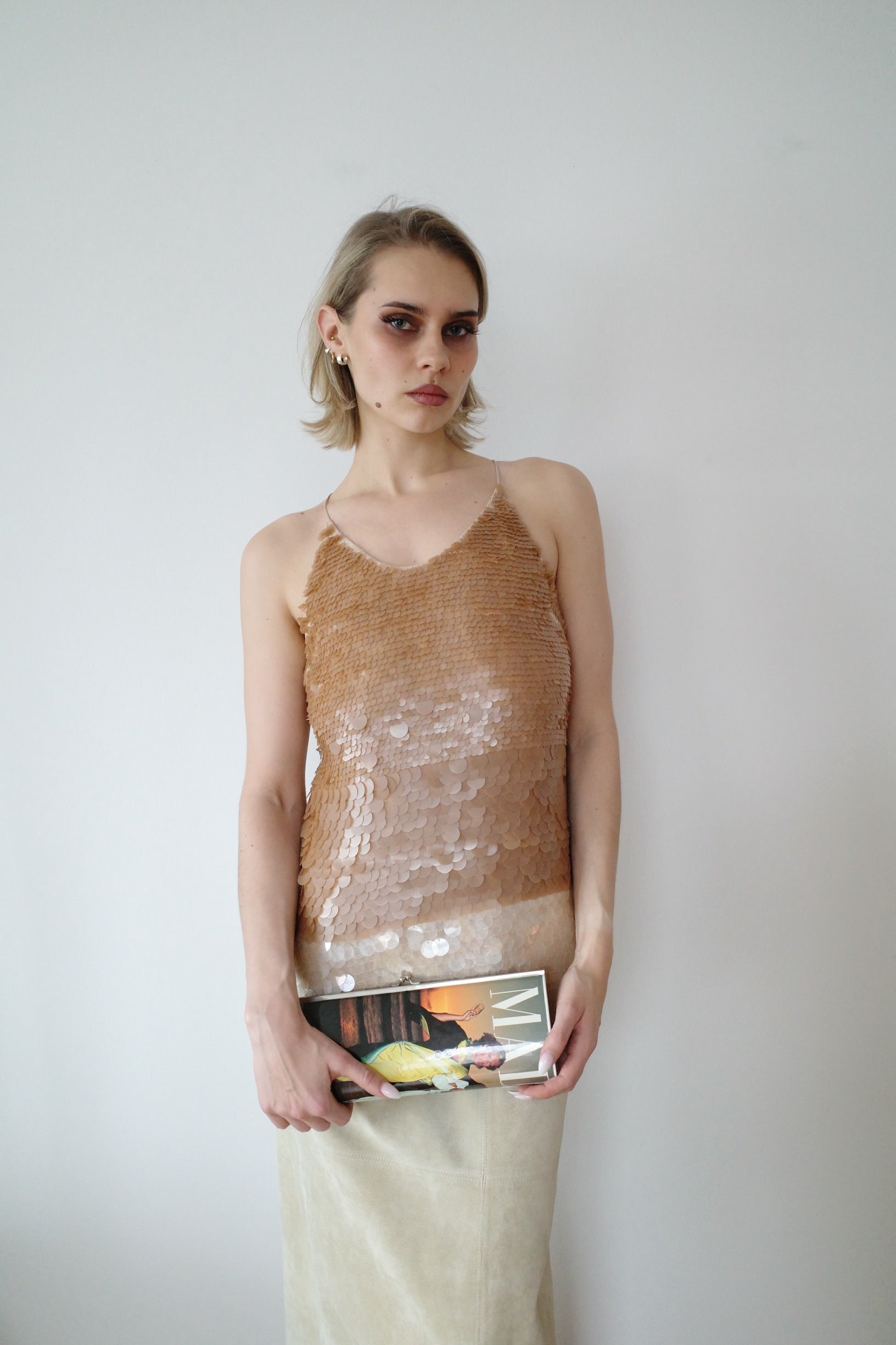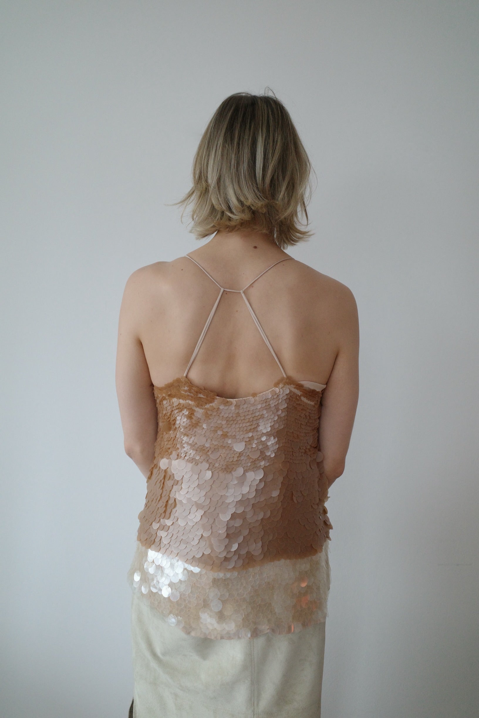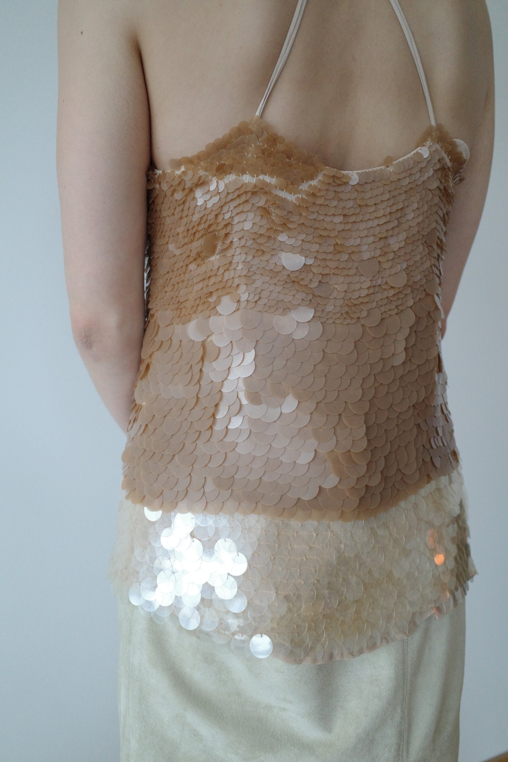 Vintage - Stunning tank top covered in multi-sized sequins in soft peach, copper and cream tones. The sequins create a beautiful, shell-like sound when you move — an eye-catching, elegant detail that elevates any night-out or special-event look.