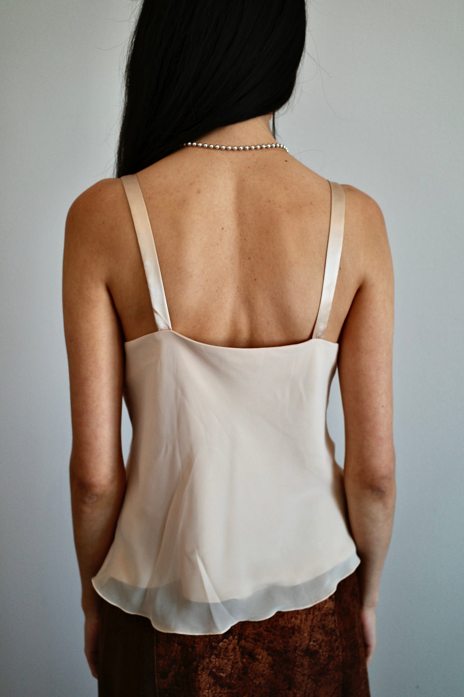 VINTAGE — chiffon camisole top in beige with an asymmetric volant neckline.